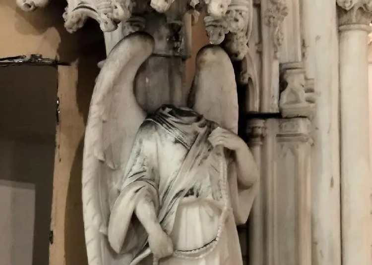 A bejeweled tabernacle believed to be worth $2 million was stolen from a Brooklyn church by godless thieves who also decapitated statues of angels, cops and church officials said Sunday. The crooks used power tools to slice open a steel cabinet at St. Augustine Roman Catholic Church in Park Slope and swipe the “pure 18-karat gold tabernacle with jewels” sometime between Thursday and Saturday, police said.
