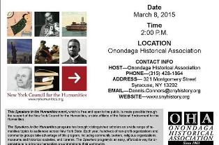 This lecture is free and open to the general public and was made possible through the Speakers in the Humanities program of the New York State Council for the Humanities. The event will take place at OHA at 2P.M, located at 321 Montgomery Street Syracuse, New York. Downtown parking options are available through the Downtown Committee.