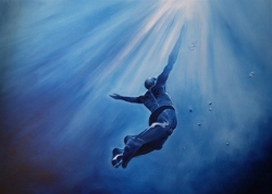 TOTO's work as a painter is tied equally to Romanticism and Surrealism as it looks deeply into the possibilities that lie in the use of colors to convey visceral emotions. Using shades of blue and white, TOTO traverses the space between dreams and waking perception. Her project is particularly benefited by her oceanic and atmospheric motifs, which highlight the way her palette obscures the difference between fantasy and reality. In this way, her figurative and sculptural paintings connect stylized realism and ethereal symbolism in a unified manner.