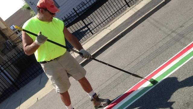 On Monday, village residents, business owners and officials worked to turn the area into "Little Italy" in preparation for next weekend's Gusto Italian Festival.