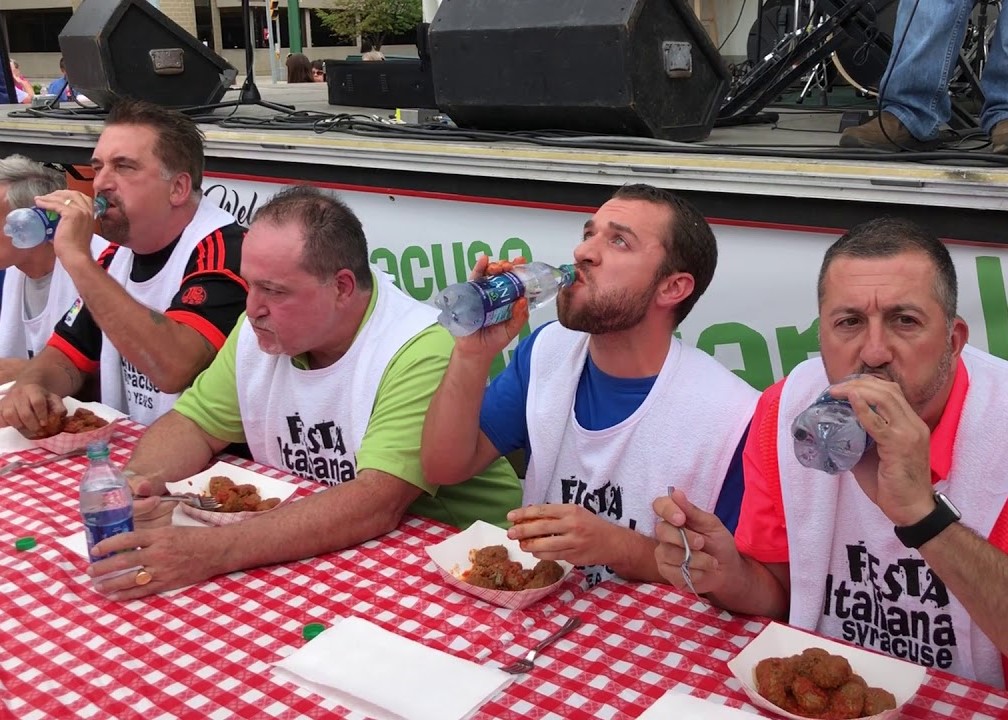 "It's probably one of the best moments of my life,'' Favale recounted on Monday. "What a moment.'' Favale's triumph won a $500 donation to the Crunch foundation. Like any serious competitor, Favale practiced for the main event. He said a dry run earlier in the week primed his strategy of mushing the meatballs before he jammed them into his mouth. That made them easier to chew.