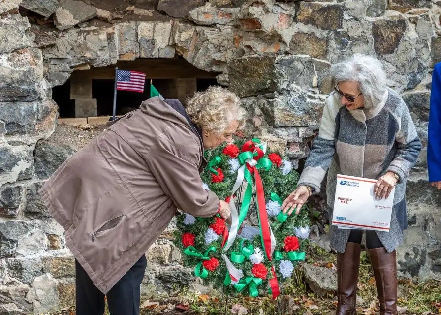 A wreath-laying ceremony was held Saturday at the Italian Oven on the east end of Loomis Street just before you get to Highway 167.
