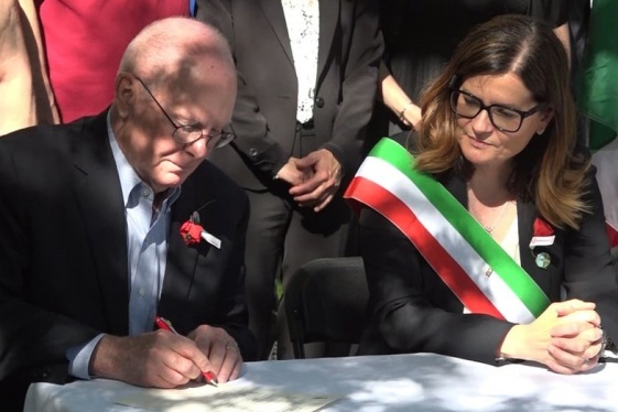 People from Corning’s sister city in Italy, San Giovanni Valdarno, celebrated their long-lasting friendship with the people of Corning. Corning’s Mayor William Boland and San Giovanni Valdarno’s Mayor Valentina Vadi exchanged loving embraces, gifts, and decide to re-sign their allegiance to one another, that has been intact for 20 years. Mayor Bola...