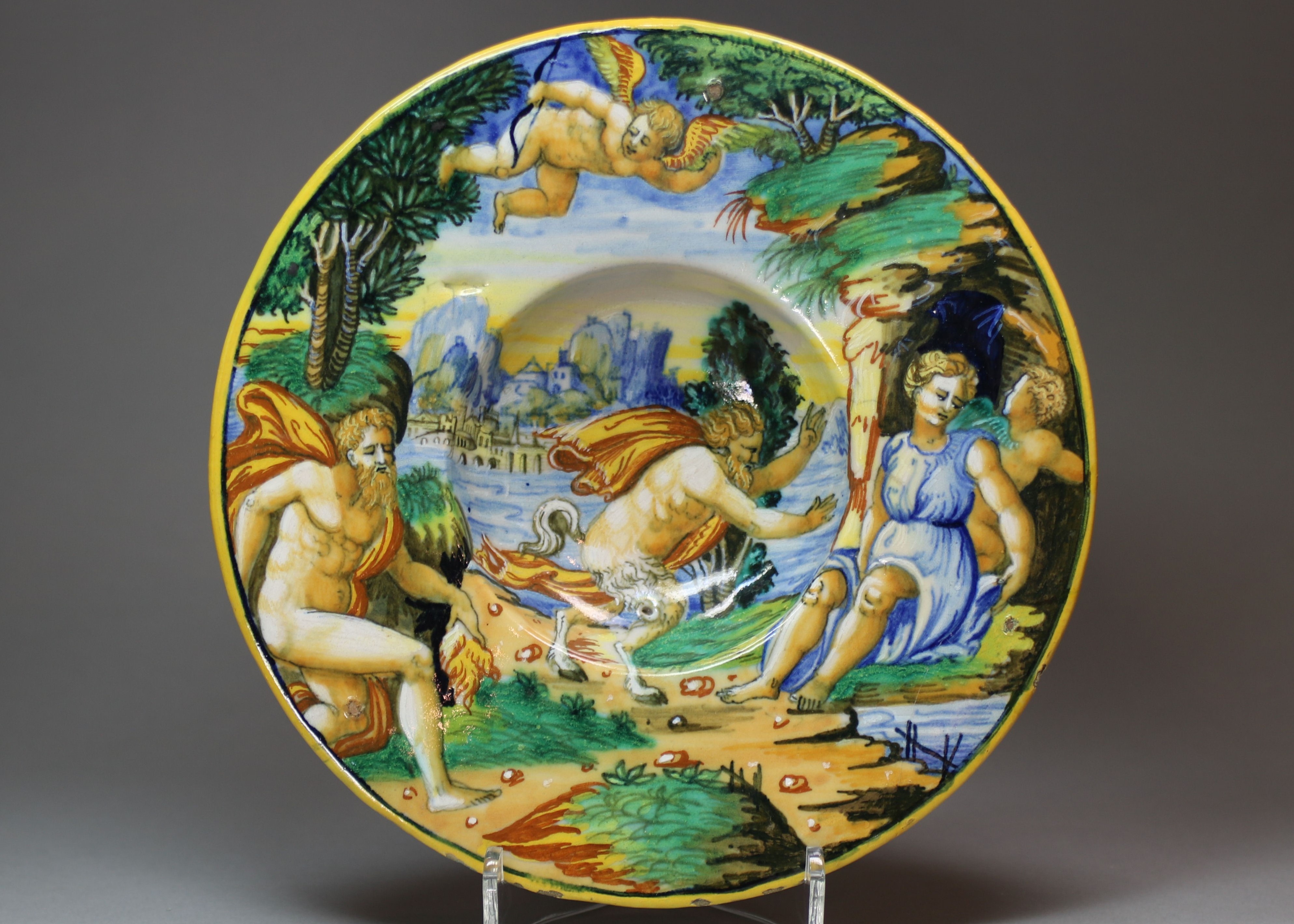Like a talented storyteller beginning his tale, a generous host invites visitors into the scene by setting the table with delicious food and decorated dinnerware. In Renaissance Italy, maiolica was the standard form of pottery used to serve these welcoming meals. The exhibition “Storytelling in Renaissance Maiolica,” on view at the Georgia Museum of Art at the University of Georgia April 27 until Jan. 5, 2020, contains several of these tin-glazed earthenware plates from 16th-century Urbino and Venice.