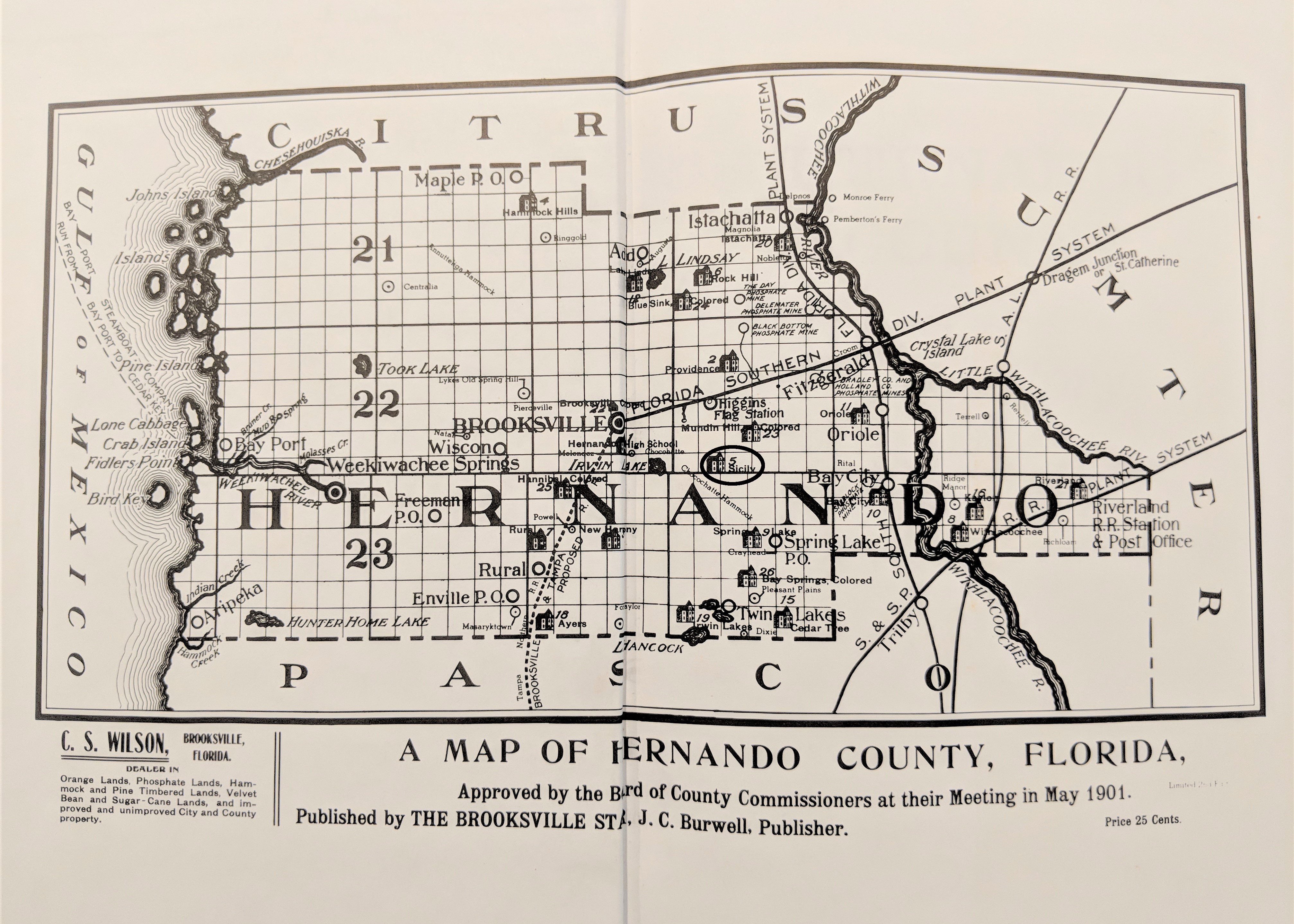 There have been a number of towns that have come and gone in Hernando County, among them are Augusta, Pemberton Ferry/Croom, Oriole and Sicily. The town of Sicily was briefly mentioned around 1900. The Hernando County Superintendent’s Report for 1900 mentions that there are 24 schools.
