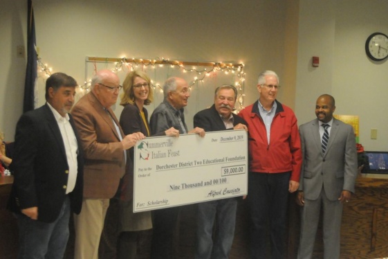 The Summerville Italian Feast donated $9,000 to the Dorchester District 2 Education Foundation. The Summerville Italian Feast gave the check to Education Foundation founder Jennie Crosby and board chair James Weaver at the Dorchester District 2 school board meeting on December 9th. Crosby said that the Italian feast is an important part of the Sum...