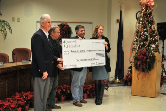 Officials with the Italian Feast showed their support for Dorchester District Two by handing over a $10,000 check to the Dorchester District Two Educational Foundation. Jay Lombardo, event director and president of the board of trustees for the Italian Feast, said this is the third year the Italian Feast has donated money to the foundation: it cont...