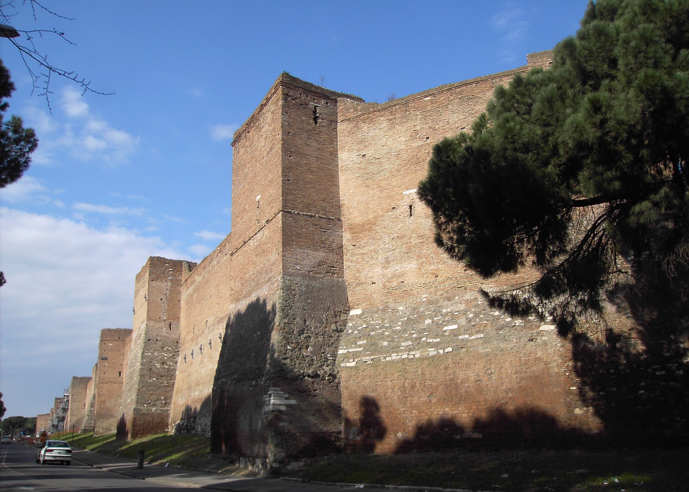 In 271 AD, the Emperor Aurelian began the construction of a defensive wall around the city of Rome. The wall, known as the Aurelian Wall, surrounded the city in a circuit of 19 kilometers or about 12 miles with a fortification that was 8 meters (12 feet) high. This barrier was designed the thwart attacks by barbarian armies, but it also defined a boundary for the city along which were the aqueducts, the cemeteries, and, after the construction program of the Emperor Constantine in the fourth century AD, the Christian basilicas of Rome.