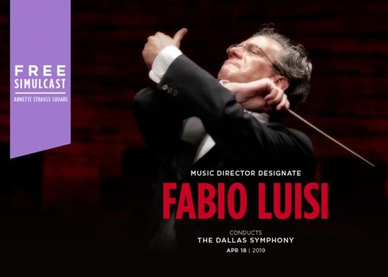 The Dallas Symphony Orchestra (DSO) announced today a free, live-concert simulcast to be screened on Thursday, April 18, 2019, at Annette Strauss Square at the AT&T Performing Arts Center. This performance will mark conductor Fabio Luisi’s first appearance with the DSO since he was announced as the orchestra’s next Music Director.