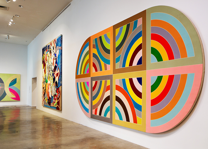 The exhibition was organized by one of today’s best curatorial minds, Bonnie Clearwater, director and chief curator of the NSU museum since 2013 and, before that, of the Museum of Contemporary Art, North Miami. The New York–based Stella, now 81, burst onto the scene barely out of college with his “Black Paintings,” sober geometric studies composed of wide black stripes separated by chalky white lines.