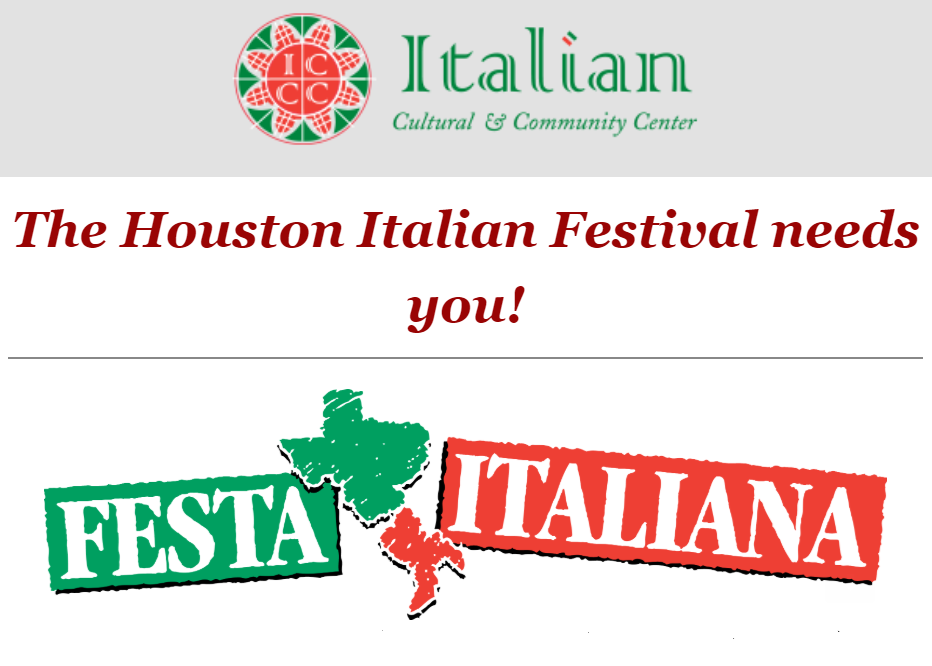 The Houston Italian Festival is seeking new volunteers to join the Festival Executive Committee in 2019! Each year, Festa Italiana is made possible by the helpful hands of the committee members, who serve in the full calendar year and make important decisions throughout the year. The Committee meets once a month beginning in February. If you feel like taking the next step and getting involved, we need your help.