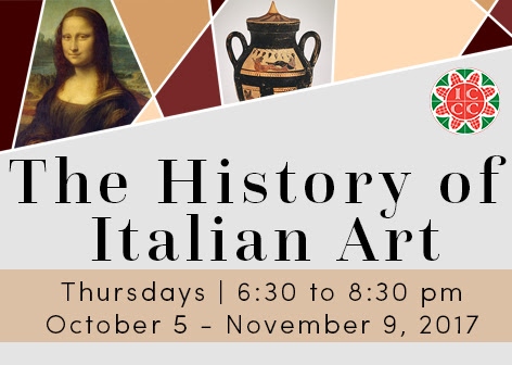 Each lesson will journey through places of historic and artistic interest and focus on how to read each piece using different levels of understanding. Every participant will receive a booklet with a summary of the lesson and a glossary with Italian technical terms. Course will be taught in English. Visit our website for the complete schedule of classes. Thursdays from 6:30 to 8:30 pm. First lesson on October 5, 2017