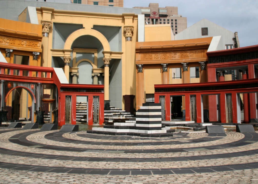 The space is called Piazza d’Italia, and it takes up a piece of the block surrounded by Poydras Street and the Loew’s Hotel downriver, the American Italian Cultural Center and St. Peters Street on the river-side, Lafayette Street upriver, and a parking lot and Tchoupitoulas Street on the lake-side.