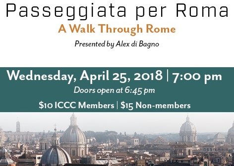 Wed, April 25, 2018. 7:00 PM – 9:00 PM CDT. Italian Cultural & Community Center - 1101 Milford St. - Houston, TX 77006. Cost: $10 ICCC Members | $15 Non-members. Get your tickets - Eventbrite or call 713-524-4222 ext. 7. Want more information? Click here.