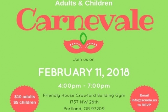 It’s finally here! Join Scuola Italiana di Portland for our annual Carnevale Party and fundraiser on February 11! This year we are doing one event for both adults and children for a true Italian style experience. The price is only $10 per adult and $5 for children 13 years old and under if you pay online. If you pay at the door the day of the event...
