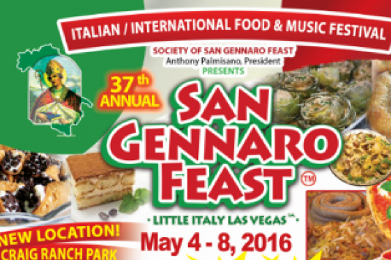 The 37th annual San Gennaro Feast is coming to Craig Ranch Regional Park next week. The festival runs from May 4 through 8. It features more than 70 restaurant food booths, 60 Helm & Sons Amusements rides, first time in Las Vegas flume ride, 80-foot petting zoo, pony rides and piglets, midway games, arts and crafts booths, and continuous live...
