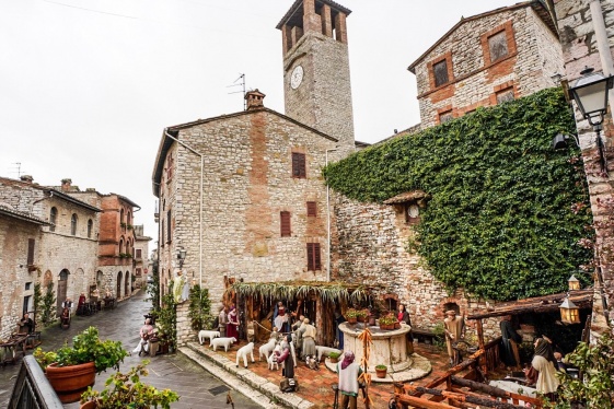 Corciano is located midway between Perugia and Lake Trasimeno, at the top of a hill overlooking the valley that links Tuscany and the Trasimeno area with the Tiber River valley. The original castrum was built in the Middle Ages, and is the “hilltop” type, with a concentric street system, enclosed within three circuits of defense walls (13th-14th ce...