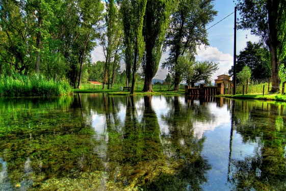 Clitunno springs (Fonti del Clitunno) stretch over a 2.5-acre area along Via Flaminia, between Spoleto and Foligno, in the municipality of Campello sul Clitunno, Umbria. The whole area is served by underground springs that flow from natural cracks in the rock. There are two main outlets which actually feed the Clitunno River: the so-called “Sources...