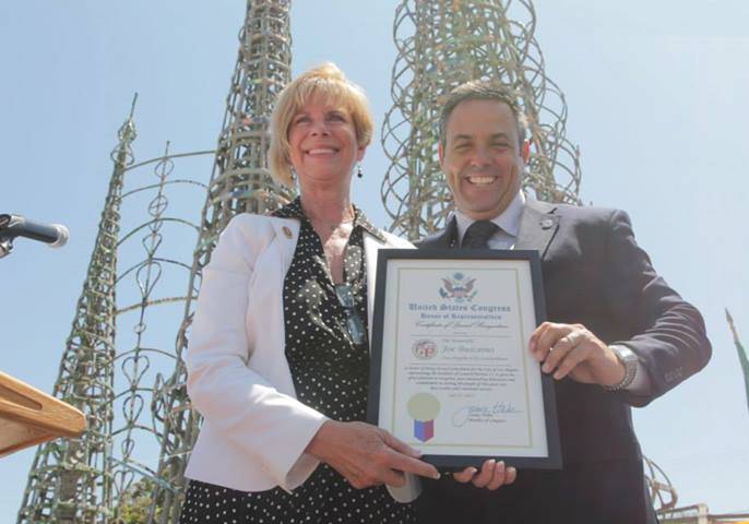 Lo scorso 27 luglio, sullo sfondo delle Torri di Watts, le incredibili spire erette oltre 60 anni fa dall'emigrante italiano Simon Rhodia ed oggi sotto la tutela del Watts Tower Arts Center, un altro italo-americano, Joe Buscaino, ha prestato giuramento come rappresentante del 15^ distretto in seno al Consiglio municipale di Los Angeles.