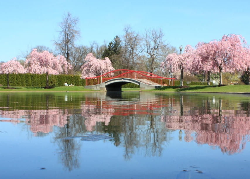 Italian Lake Park at Third and Division streets was part of the City Beautiful Movement in 1901. It was designed by landscape architect Walter Manning of Boston. Features of the Lake include a Japanese harmony bridge and the Dance of Eternal Spring sculpture. After the lake had fallen into disrepair, in 1990 the city spent $200,000 to make repairs and improvements. The lake was drained and dredged to remove debris from hidden mosaic tile, the fountain was repaired and the concrete barrier was rebuilt.