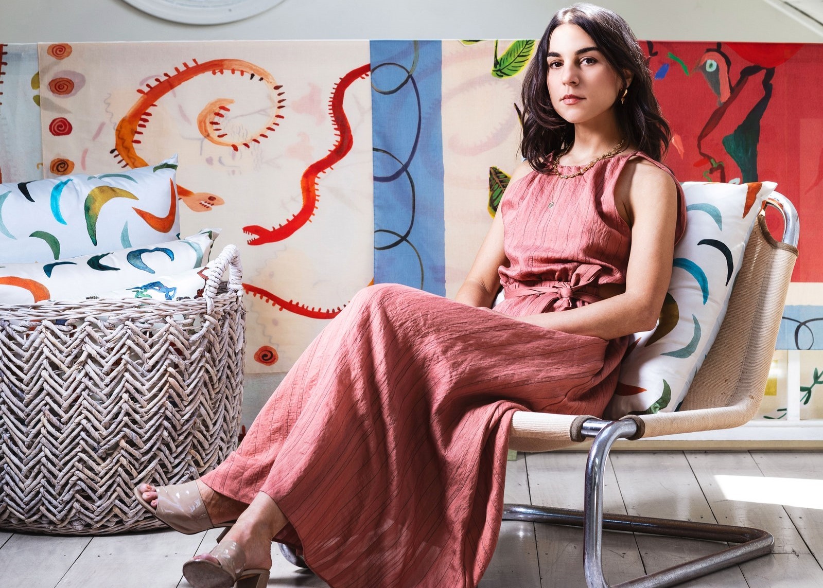 A new pillow is decorated with female figures, while a tablecloth depicts a dreamy garden of Eden. All draw inspiration from the Sicilian lifestyle, especially its art of dining, which she has explored during the pandemic, getting into cooking for the first time.