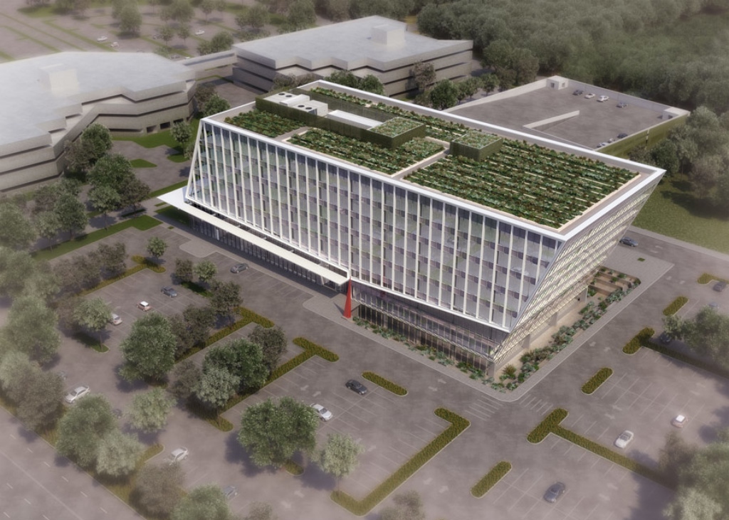 Tomorrow elected officials are breaking ground on a Staten Island office building with a bocce court, giant rooftop farm, a nearby vineyard, and a social enterprise restaurant that will serve Italian food and donate all of its proceeds to charity. Developed by The Nicotra Group and designed by CetraRuddy, the eight-story structure is part of Staten Island’s Teleport Campus in Bloomfield, not far from the Arthur Kill on the Island’s west shore.