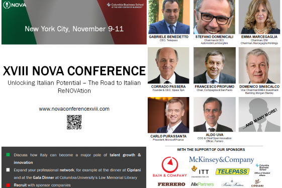 Vi segnaliamo un interessante evento che avrà luogo a New York dal 9 all’11 novembre presso la Columbia University: la XVIII NOVA Conference. L’associazione NOVA è una non-profit che riunisce più di 2.000 studenti, alumni MBA e professionsti con l’obiettivo di contribuire al successo delle aziende italiane promuovendo recruiting di studenti e alumn...