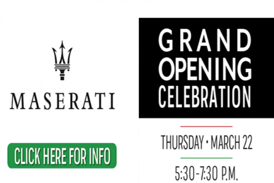 A “Viva Italia” grand opening celebration for the new Peacock Maserati & Alfa Romeo outlet will be held from 5:30–7:30 p.m. on Thursday, March 22, at Peacock Auto Mall. Area dignitaries have been invited to join Peacock executives for the ribbon cutting and party to officially welcome the area’s first and only signature brand Maserati luxurious car...