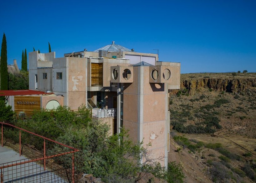 Arcosanti has been called an “experimental city,” “an “urban laboratory,” a “caravanserai.” Seventy miles north of Phoenix, the 25-acre compound, built on a 4,060-acre land preserve, rises from the desert like a mirage. The project was the brainchild of “visionary” Paolo Soleri (1919-2013). Arcology — a concept combining architecture and ecology — was his guiding light.