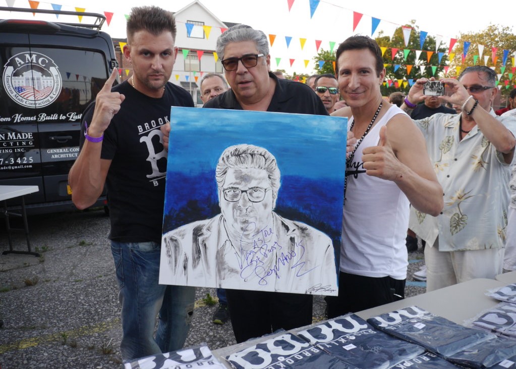 The neighborhood was out in force outside Our Lady of Grace Church on Saturday, July 13 to celebrate actor Vincent Pastore birthday a little early at an old-fashioned Brooklyn block party. Hosted by Gravesend-born actor and filmmaker William DeMeo and Michelle Frantzeskos’s Entertainment and Consultant Inc., there was food, music and dancing aplenty.