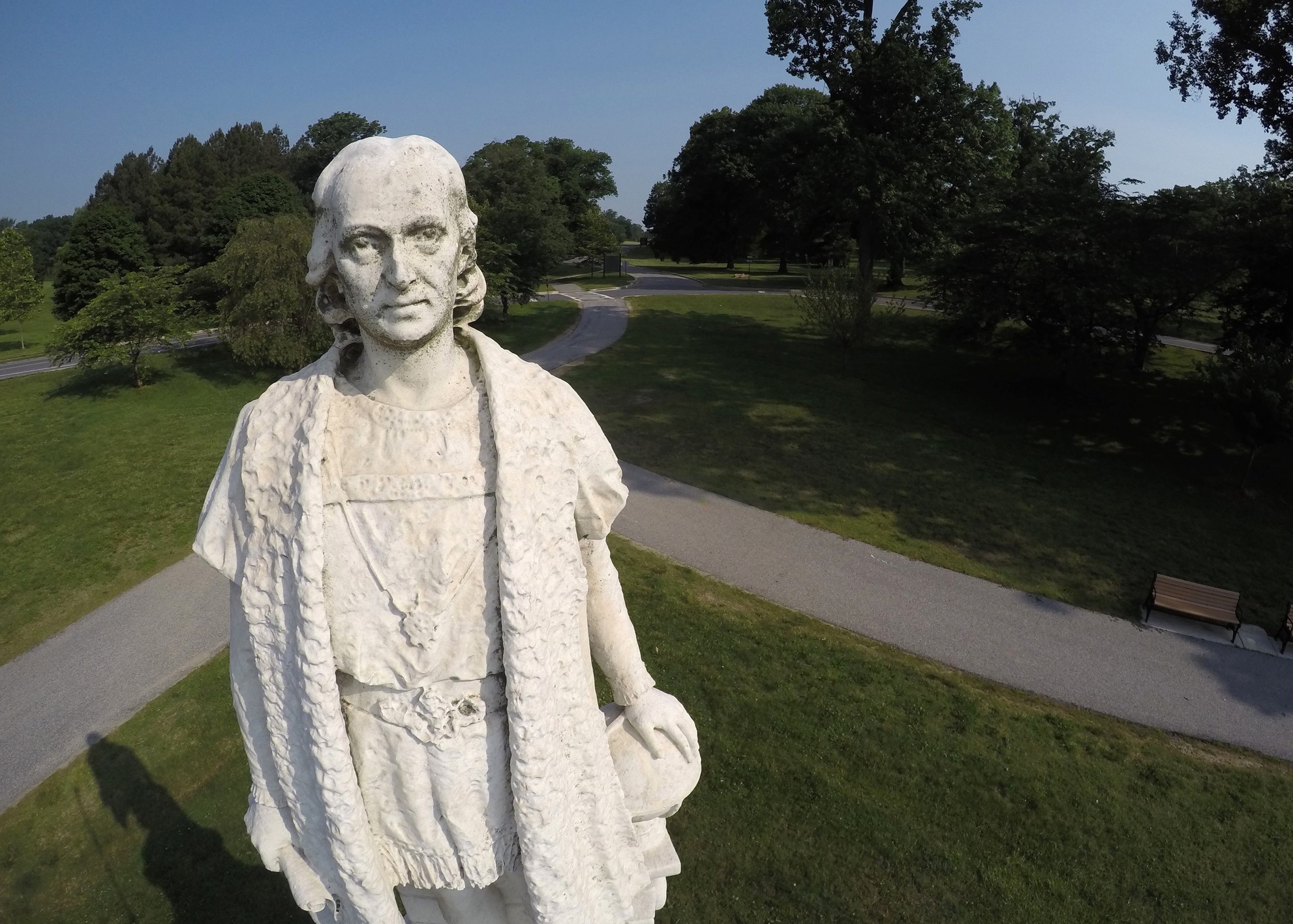The statue of explorer Christopher Columbus that looms over Astoria Boulevard was vandaliz...