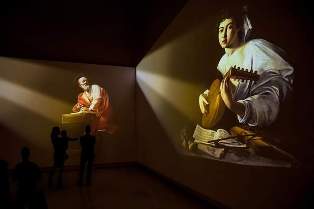 Video artists have projected the 57 works - which include Jesus being flogged, a man being beheaded and the severed head of snake-haired monster Medusa - onto the walls of the the Palazzo delle Esposizioni.