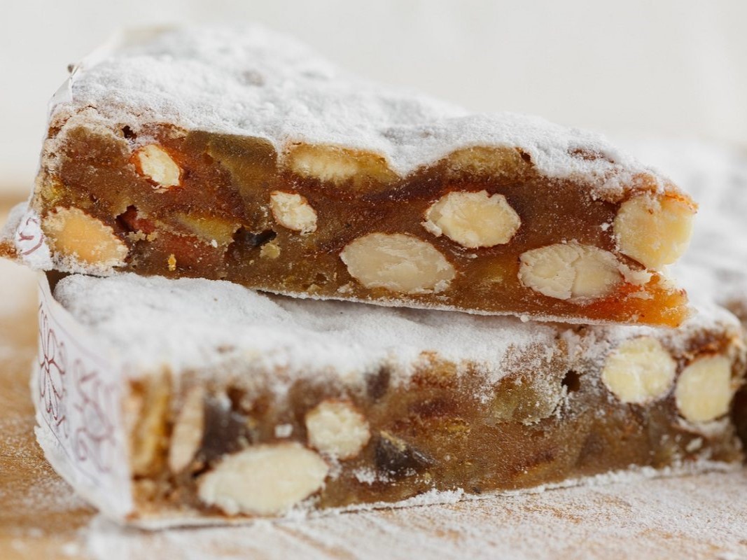 In the Italian city of Siena, Tuscany, Christmas would not be the same without Panforte, a soft and chewy sweet bread stuffed with nuts and dried fruits. Unlike its northern counterpart Panettone, Panforte is not cooked in a professional oven but can be easily concocted at home by stirring up dried fruits with nuts and flour, spices, and honey into a pan and later placing the cake mix in the oven for about 40 minutes at 350°.