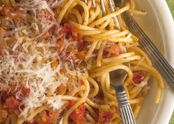 Indeed, this weekend the village was to celebrate its culinary patrimony with the 50th annual Sagra degli Spaghetti all'Amatriciana (Amatriciana Festival), and an unknown number of visitors who arrived early this week for the event may be among the vicitms. (The death toll has reached 267.) In Amatrice, purists have said Amatriciana sauce should be made with six ingredients only: guanciale, San Marzano tomatoes, white wine, black pepper, peperoncino and pecorino cheese, then tossed with spaghetti.