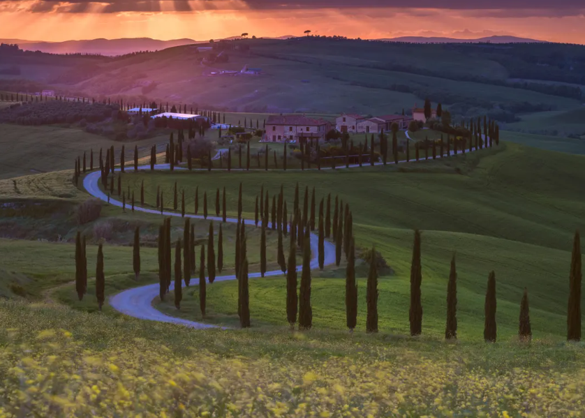 By lunchtime, we were looking for suncream, amazed at the difference a few hours could make. Ostensibly, the day’s objective was a coffee in Siena’s central piazza, but the real intention was to explore the hills called the Crete Senesi, between Chianti and the Val d’Orcia. Named after creta, the blue-grey clay that gives much of this countryside its distinctive colouring, it is a part of Tuscany that could keep a cyclist or hiker entertained for a lifetime.