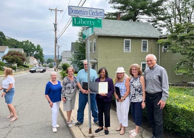 Mayor Carolyn Blackman and the Board of Aldermen have named Liberty Street in honor of Domenico Cicchetti. Born in 1896 in Pizzioli, Italy, Domenico Cicchetti moved to Dover in 1913 at seventeen years old. He was the first soldier to enlist in the Army from Dover and served in the Army Infantry in World War I. He was awarded the Purple Heart for his efforts.