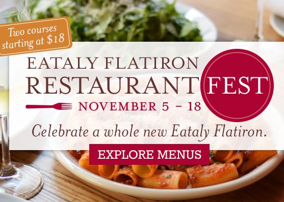 Trust us when we say that there's always a reason to dine with us – whether it's you're a first-timer or a regular Eataly guest. And now, we've got one more reason to discover our new menus. Join us for Eataly Flatiron Restaurant Fest – a two-week long dining festival featuring a two-course lunch or dinner starting at $18 in all of our six restaurants.