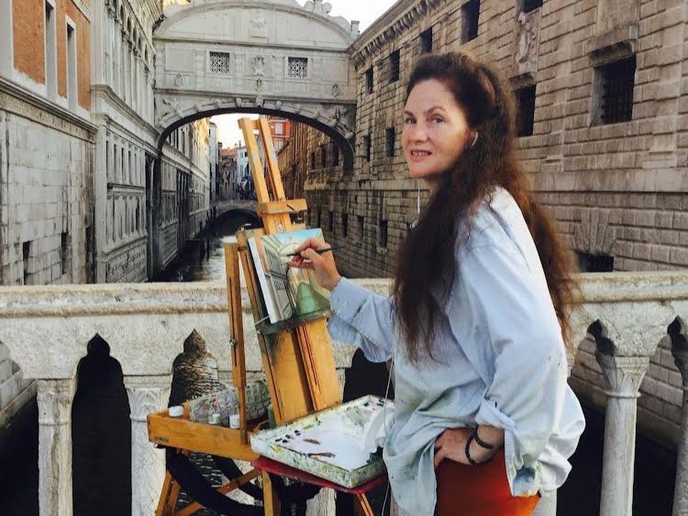 Trombetta’s exhibit includes original drawings, pastels, etchings, watercolors and oil paintings that were created on location outdoors. That’s also known in the Italian language as “all aperto.” Trombetta combines working “all aperto” with concepts and creativity to “reconstruct” the genre of realism in her artwork.