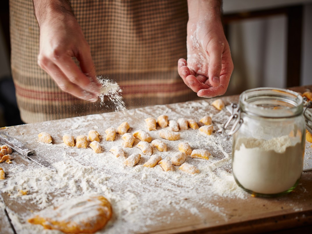 Here in my region, Piemonte, we enjoy them especially with cheeses and butter, as you’d expect from an area of Italy half occupied by mountains and hills: gnocchi alla bava, with luscious fontina, butter and parmigiano, but also gnocchi with gorgonzola and cream and, of course gnocchetti con Raschera or with Castelmagno, two of our most famous Alpine cheeses.