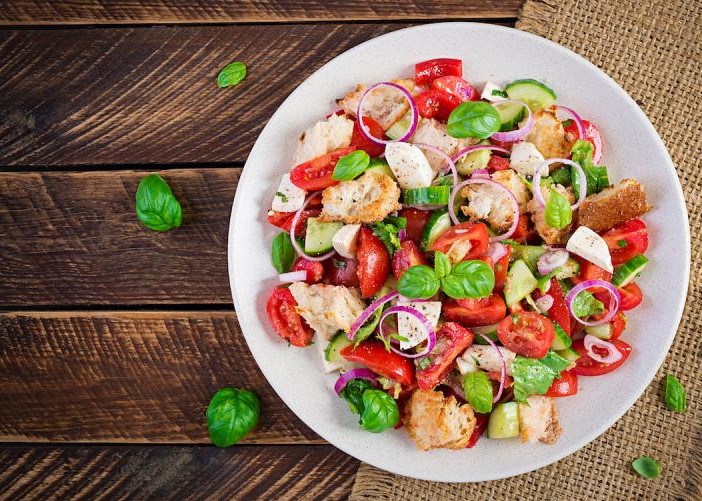 Among Italy’s favorite summer foods, besides colorful salads with in-season vegetables, tomato-based recipes, cold pasta salads, prosciutto and melon, bruschetta and gelato, is panzanella. Belonging to the tradition of ‘cucina povera’ (peasant’s cooking), panzanella is a simple dish typical of central Italy, including Tuscany, Le Marche, Umbria, Lazio and Abruzzo.