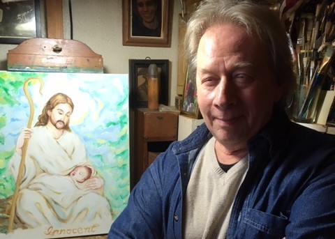 Several weeks went by and life went on. As my son’s family coped with their disappointment and grief, we had the idea of using Michael’s gift as a way to bring some kind of closure, especially to the kids. Without telling my son and his wife, Luann and I explained the situation to Michael and asked him to do a portrait of Jesus, holding a little baby. The hope was that when our grandchildren saw the painting, they would have an actual baby to envision as their heavenly brother or sister. The portrait would be named “Innocent”. It was important for Michael to show the baby in the loving arms of our Lord and for the baby to not be identified as a boy or a girl….just a beautiful baby. We left the task in Michael’s hands and put our faith in his God given gift.