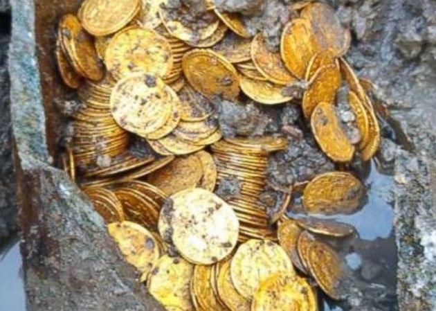 It was an amphora, not a pot, but archaeologists found a literal jackpot in a dig in northern Italy last week. No word on if there was a rainbow. Hundreds of gold coins dating from Rome's late Imperial era, the 4th or 5th century, were found Friday at a dig in Como, Italy, according to the Italian Ministry of Culture.