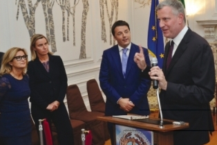 Il sindaco Bill de Blasio, al termine di un incontro con il presidente del Consiglio Matteo Renzi giovedì sera al Consolato Generale, ha detto in italiano: "Sono contento di avere incontrato per la prima volta il primo ministro, soprattutto perché siamo paesani e come sindaco di questa città è un onore darle il benvenuto, lo dico da genuino italoamericano orgoglioso delle proprie origini".
