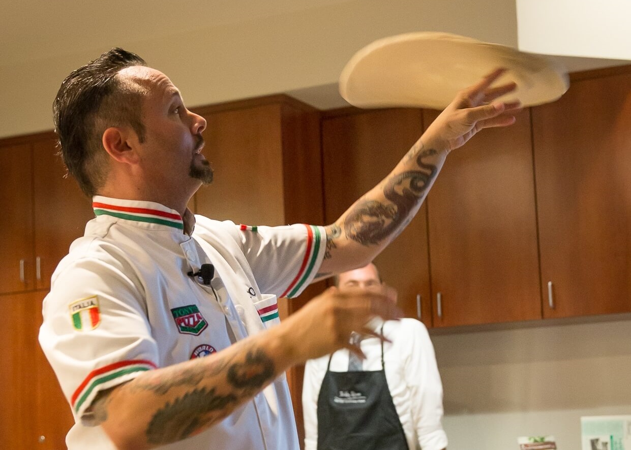 Tony Gemignani is equal parts chef and athlete. The Italian-American restaurateur is a pro at tossing pizza dough, and can perform complicated feats like tossing the stiff flour mixture high into the air, spinning it around his shoulders or through his legs, and even juggling multiple pizzas-in-progress at a time. Those skills are regularly served up at the World Pizza Games competition.
