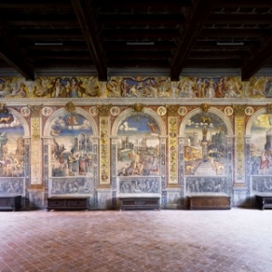 In Mantua, we have a singular case: it is Palazzo d'Arco. The cycle of frescoes in the hall of this building is clearly inspired to the zodiac, but in this case, there are no human activities or planets that govern the signs. In the large arches that mark the walls, we have episodes sometimes drawn from myths in an original way, elements of royal archeology, and scenes of a symbolic nature not always easy to interpret.