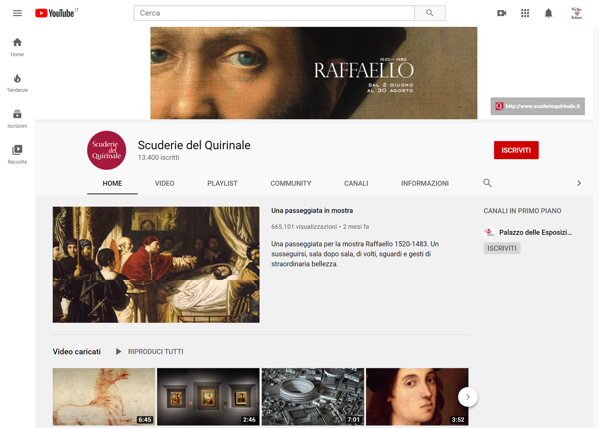 In Rome, the Scuderie del Quirinale virtually reopened their doors to give the possibility to visit online “Raphael 1520-1483”,the imposing exhibition dedicated to Raphael on display until 2 June. On its web-site and social media channels (Facebook page and YouTube channel), the museum tells about the exhibition with the project “Raffaello oltre la mostra” (Raphael beyond the Exhibition): in the form of video-walks in the museum’s halls, the exhibition superintendents and eminent scholars describe the works (more than 200 among paintings, tapestries, drawings and letters coming from all over the world) disclosing the virtuosity of the great Renaissance artist, including curious facts about his life and the exhibition backstage.