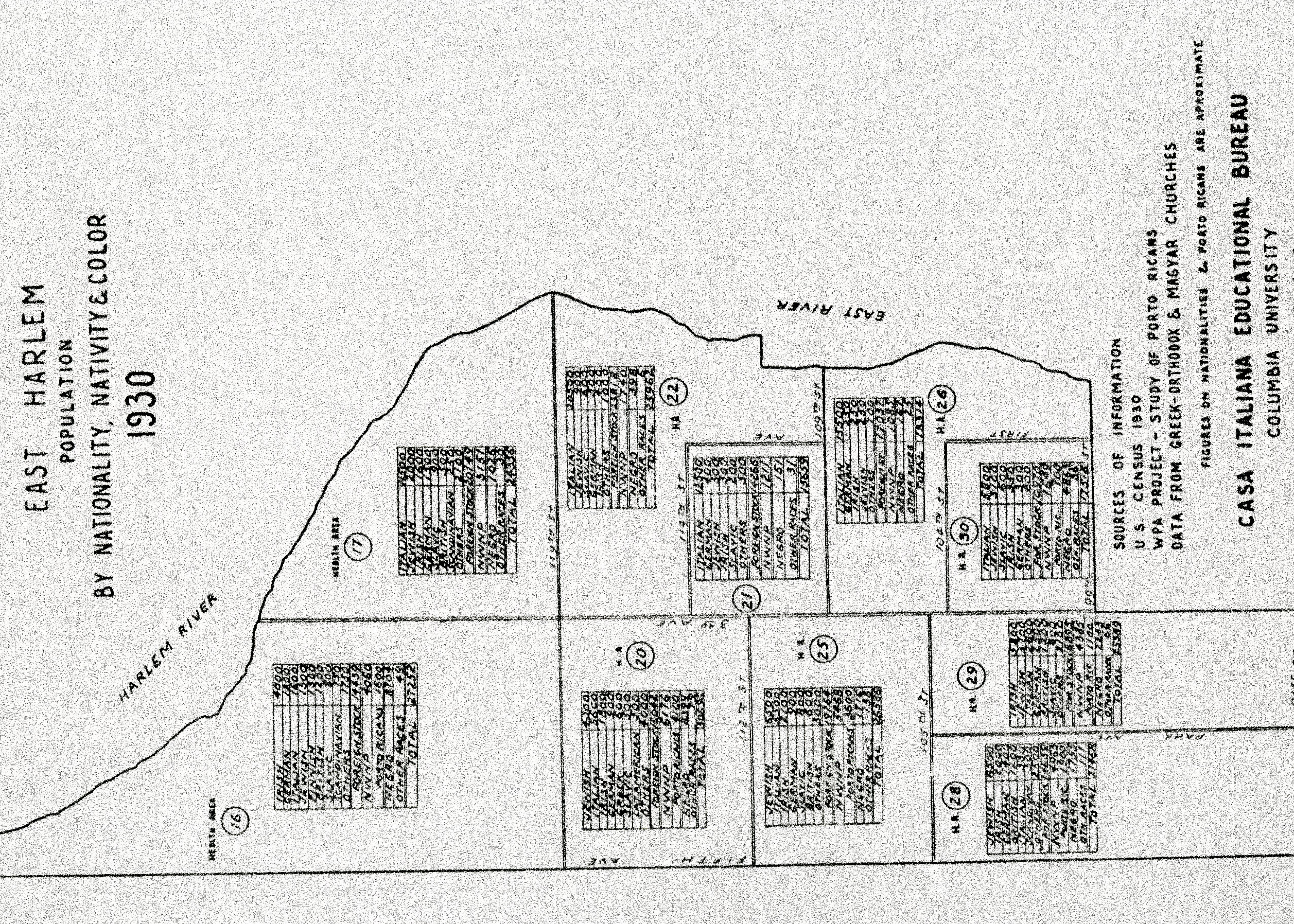 Note: According to the 1930 Census, there were 5800 Italians living between E. 99th and E. 104th, from 1st Avenue to 3rd Avenue. Next, from East 104th to East 109th Streets, from 1st Avenue, heading west to 3rd Avenue, there were 15,500 Italians living in that zone.