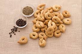 They are crisp, melting rounds of dough made with just flour, water, olive oil for taste and richness and a little wine for crunchiness. If you are a fan of grissini, the thin long Italian breadsticks, taralli will taste pleasantly familiar.