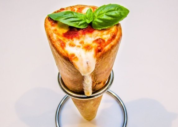 You’re used to coffee on the go. Why not pizza? After years of dripping grease and folding triangular slices, the folks at Italy-based Kono Pizza developed an ingenious way of eating pizza. It’s in a cone.