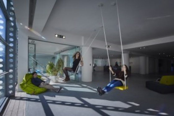 A 4,000 square meters seafront open space with swings, billiards, sofas and citrus trees;...